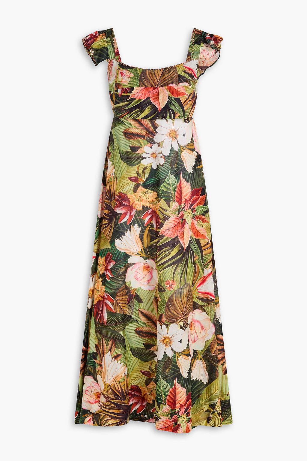FARM RIO Ruffled floral-print cotton midi dress