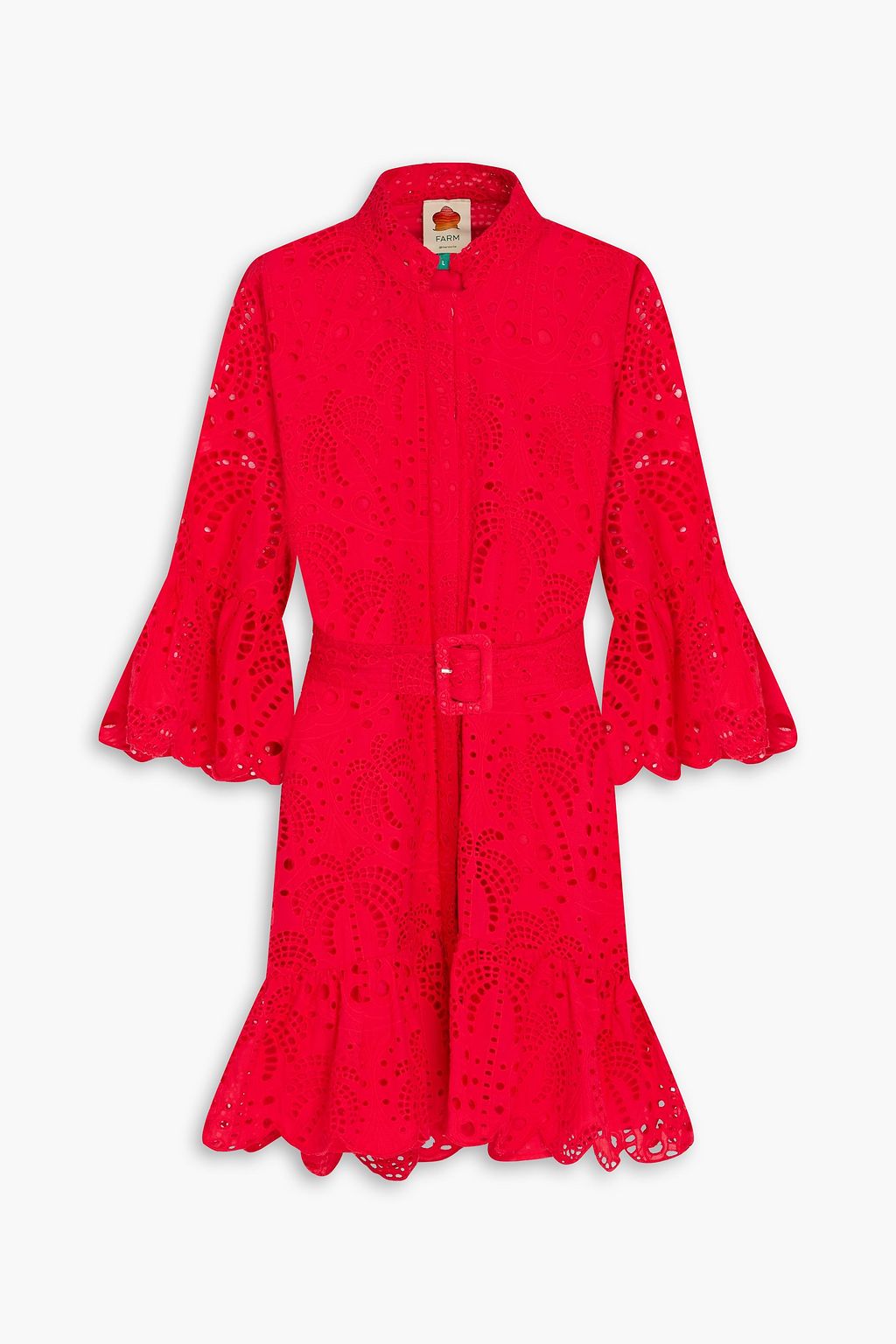 FARM RIO Belted broderie anglaise cotton mini dress