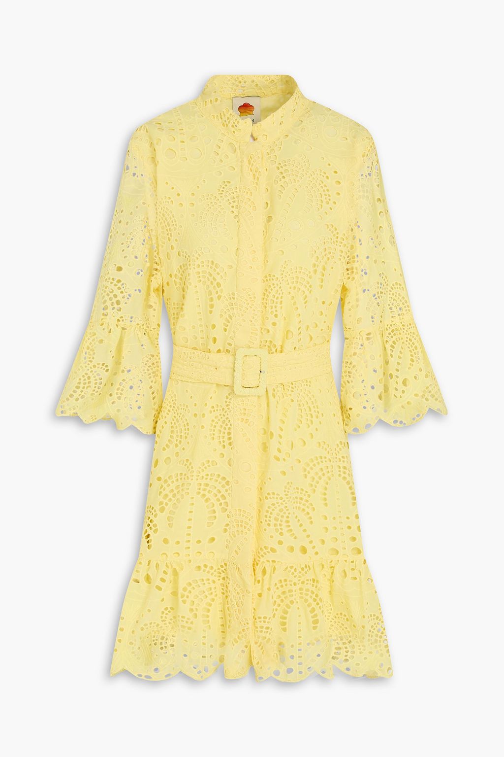 FARM RIO Belted broderie anglaise cotton mini dress