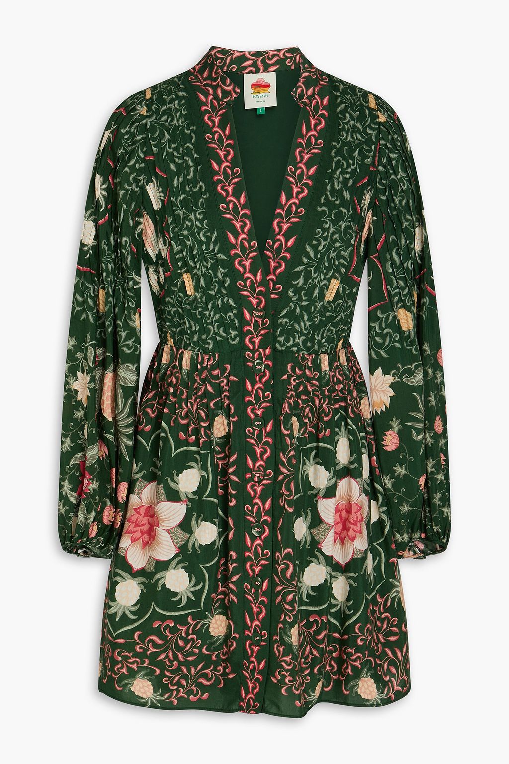 FARM RIO Pintucked floral-print mini dress