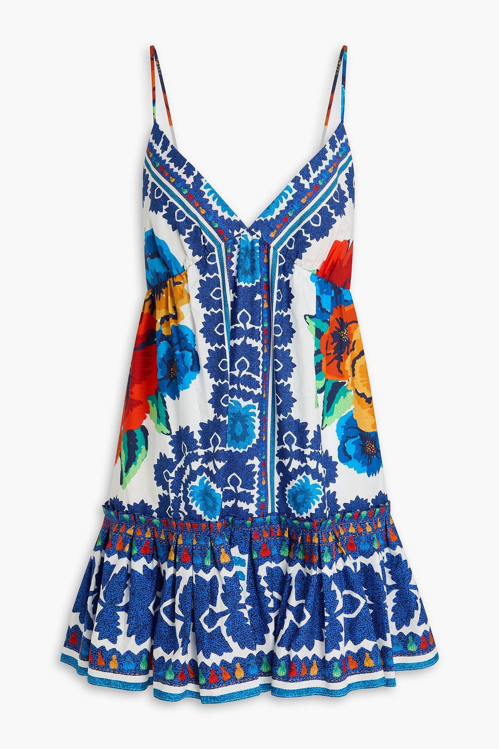 FARM RIO Pleated floral-print cotton-poplin mini dress
