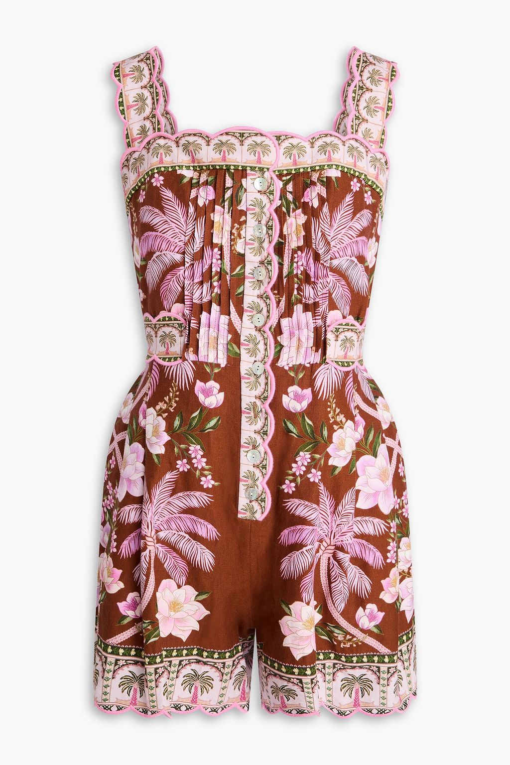 FARM RIO Pintucked floral-print linen-blend playsuit