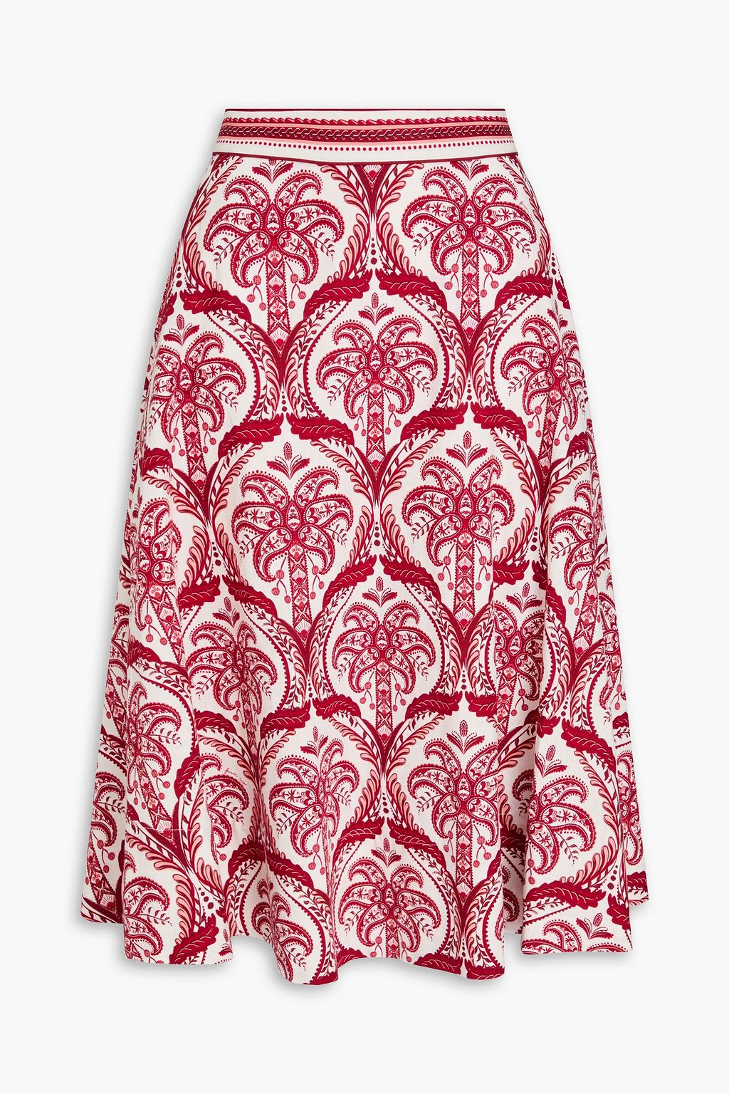 FARM RIO Paisley-print linen-blend midi skirt