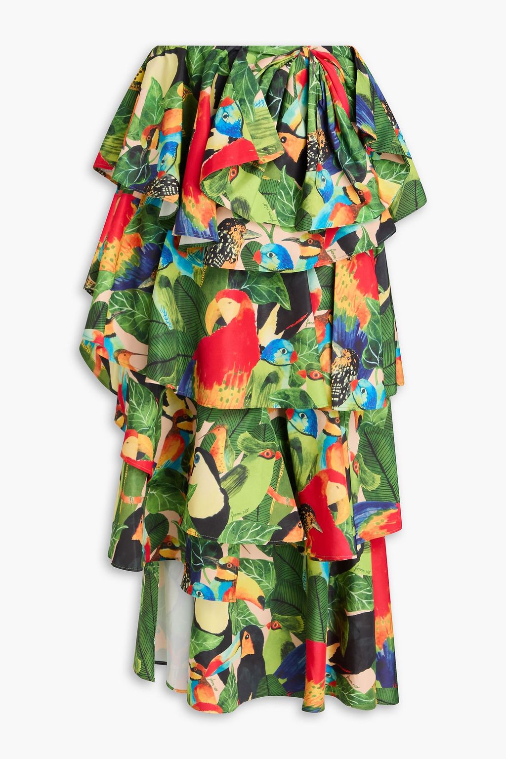 FARM RIO Tiered ruffled printed taffeta midi skirt