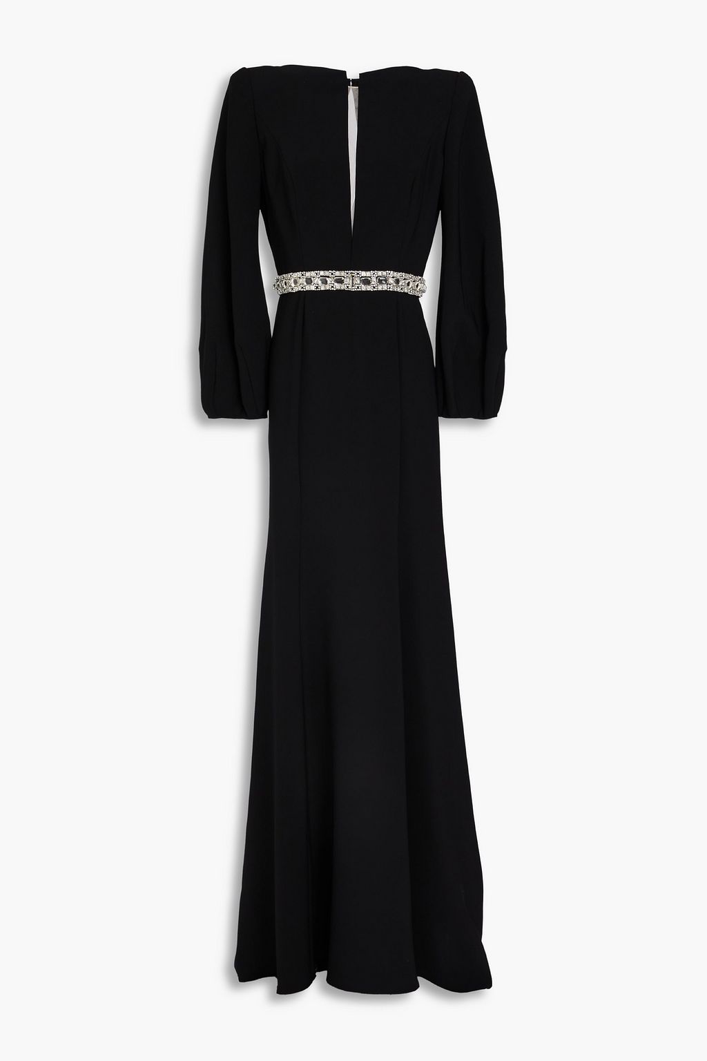 JENNY PACKHAM Crystal-embellished tulle-trimmed crepe gown