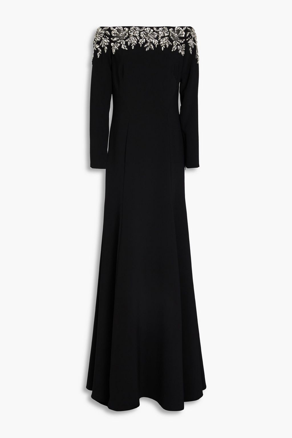JENNY PACKHAM Off-the-shoulder embellished crepe gown