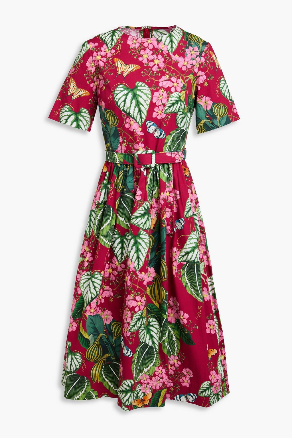 OSCAR DE LA RENTA Belted floral-print stretch-cotton poplin midi dress