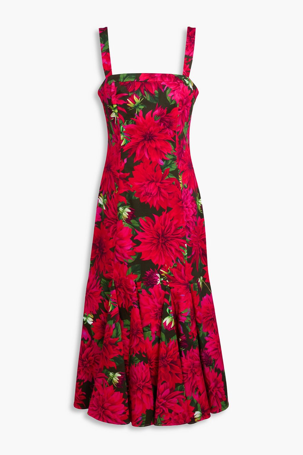 OSCAR DE LA RENTA Bow-detailed floral-print cotton-blend twill midi dress