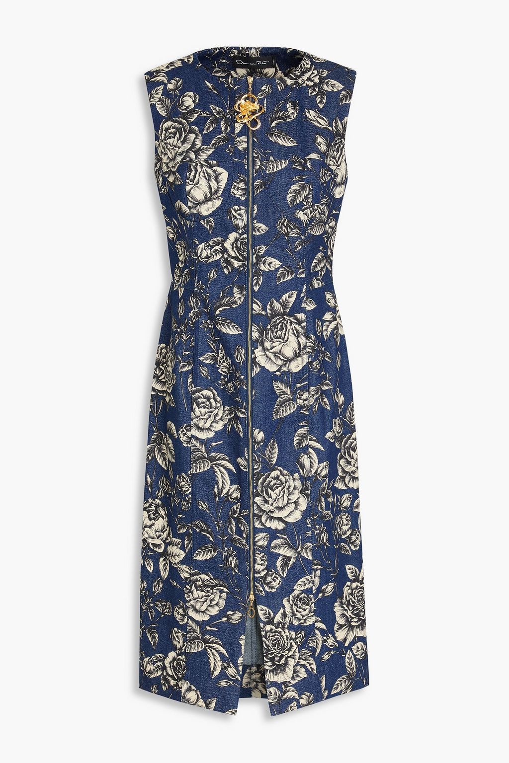 OSCAR DE LA RENTA Floral-print denim midi dress