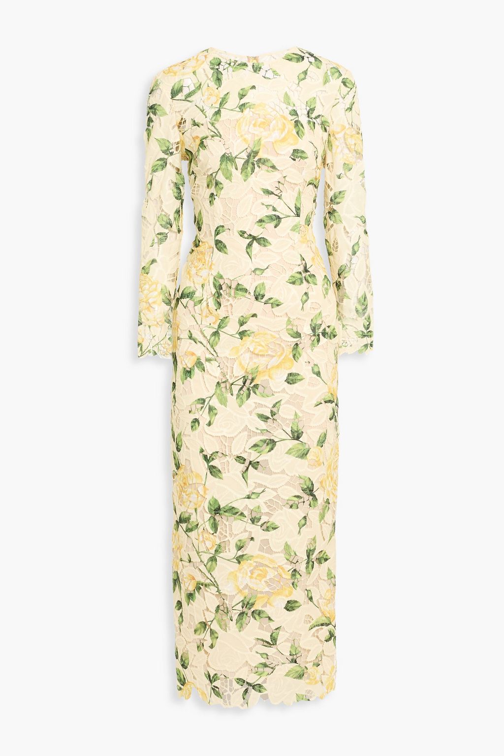 OSCAR DE LA RENTA Floral-print guipure lace midi dress