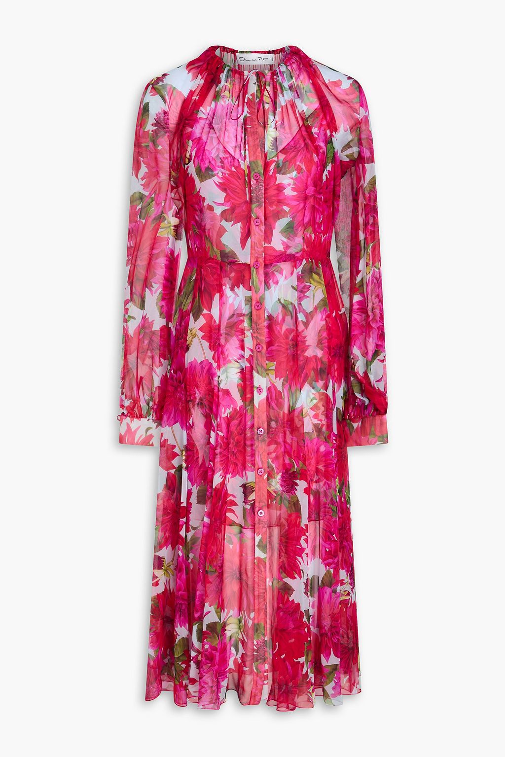 OSCAR DE LA RENTA Floral-print silk-chiffon midi dress