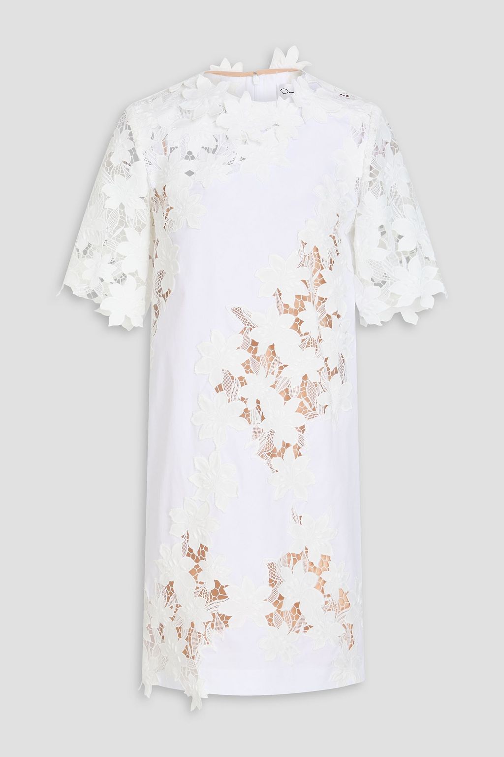 OSCAR DE LA RENTA Guipure lace-paneled cotton-blend twill mini dress