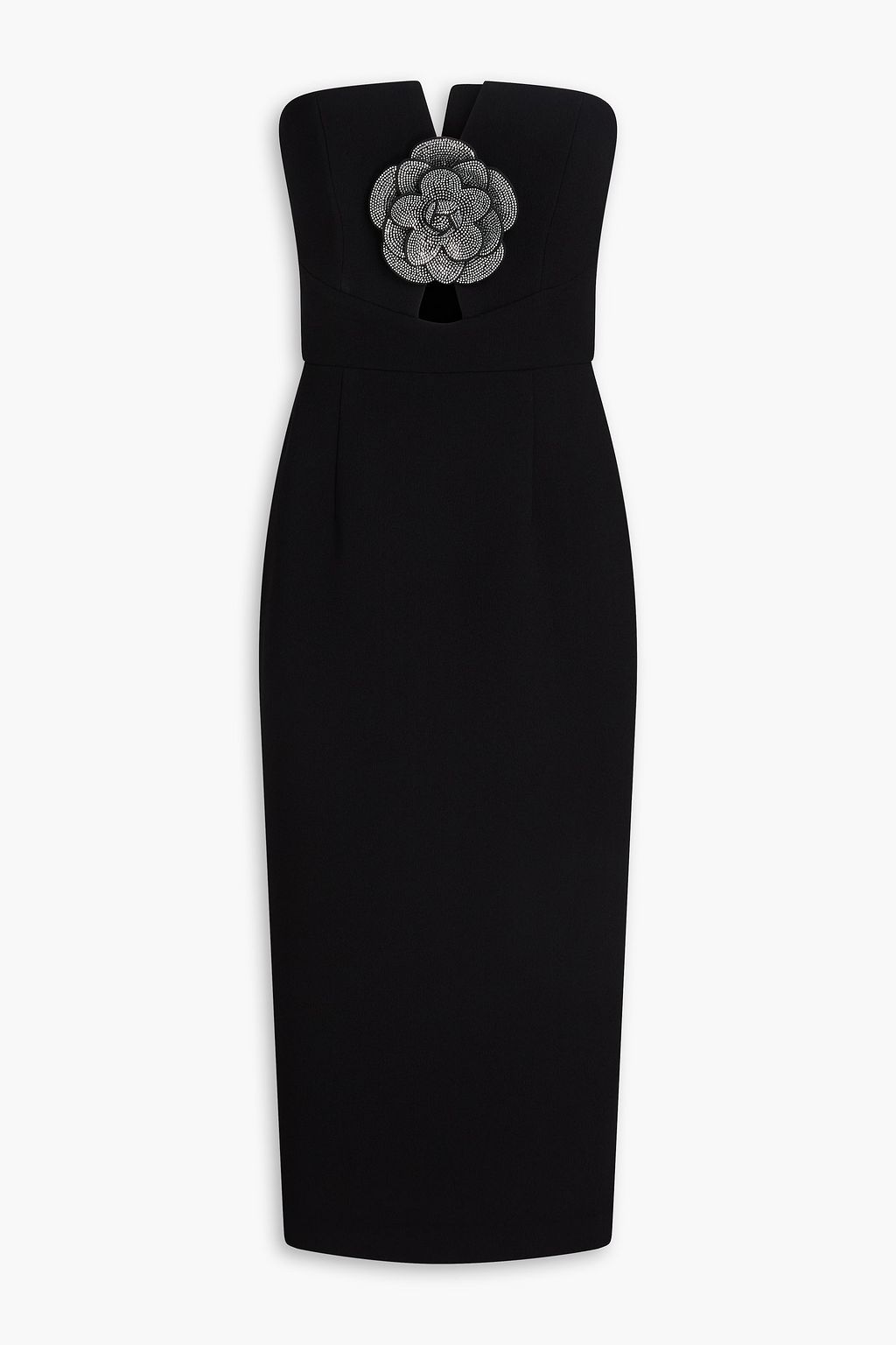 REBECCA VALLANCE Yvonne strapless floral-appliquéd crepe midi dress