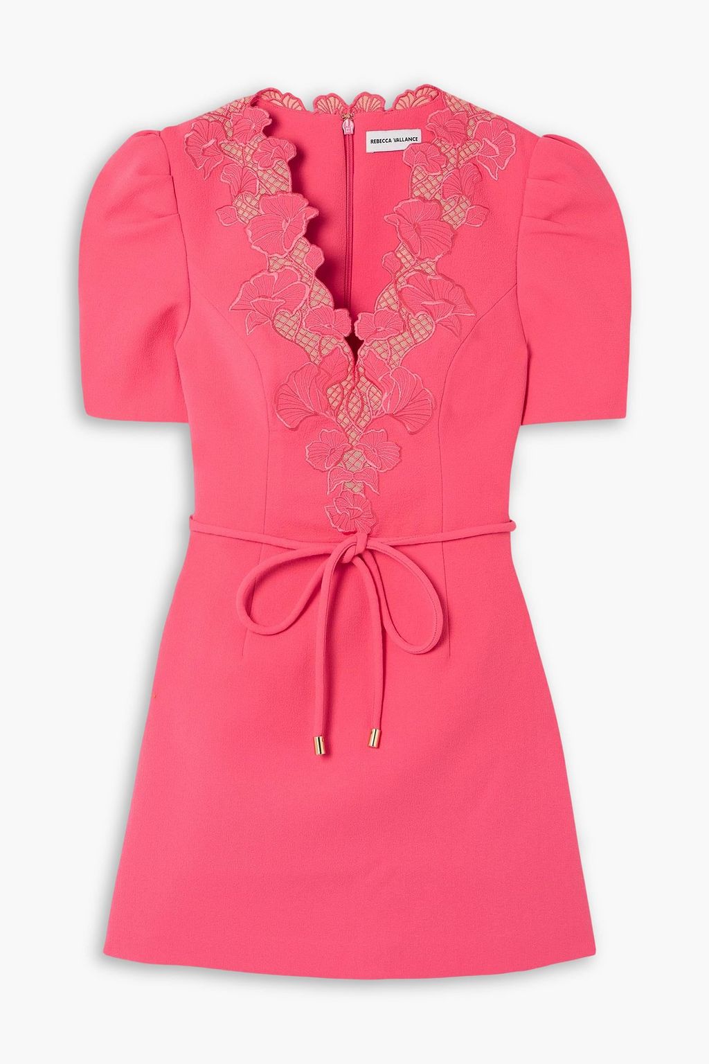 REBECCA VALLANCE Lulu belted lace-trimmed cady mini dress