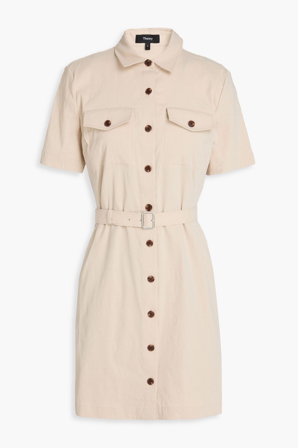 - Designed for a slightly loose fit, use the belt to cinch in at the waist