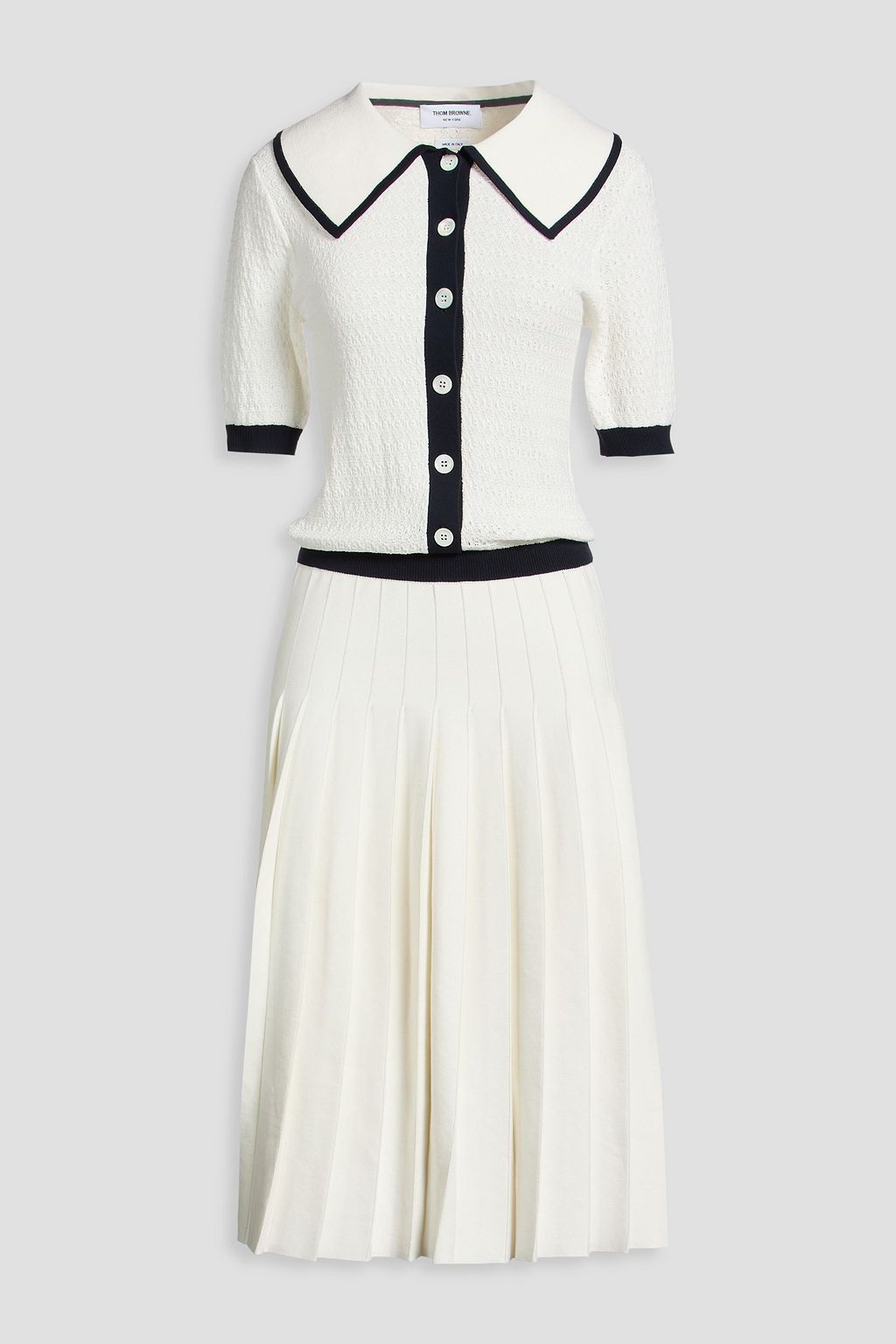 THOM BROWNE Pleated crochet-knit midi shirt dress