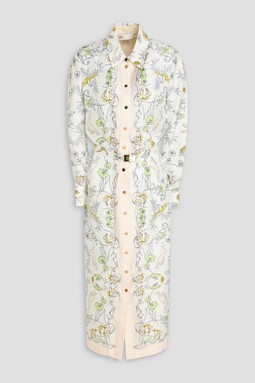 TORY BURCH Belted printed silk-twill midi shirt dress