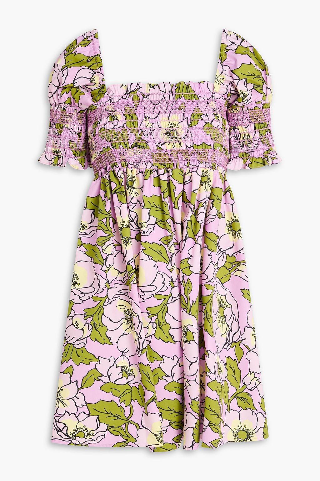 TORY BURCH Shirred floral-print cotton-poplin mini dress