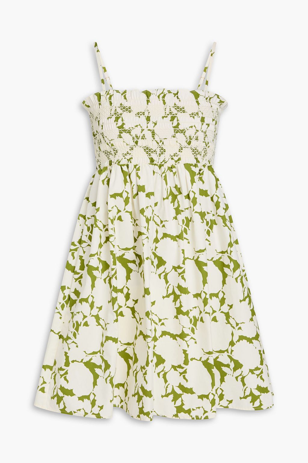 TORY BURCH Shirred floral-print cotton-twill mini dress