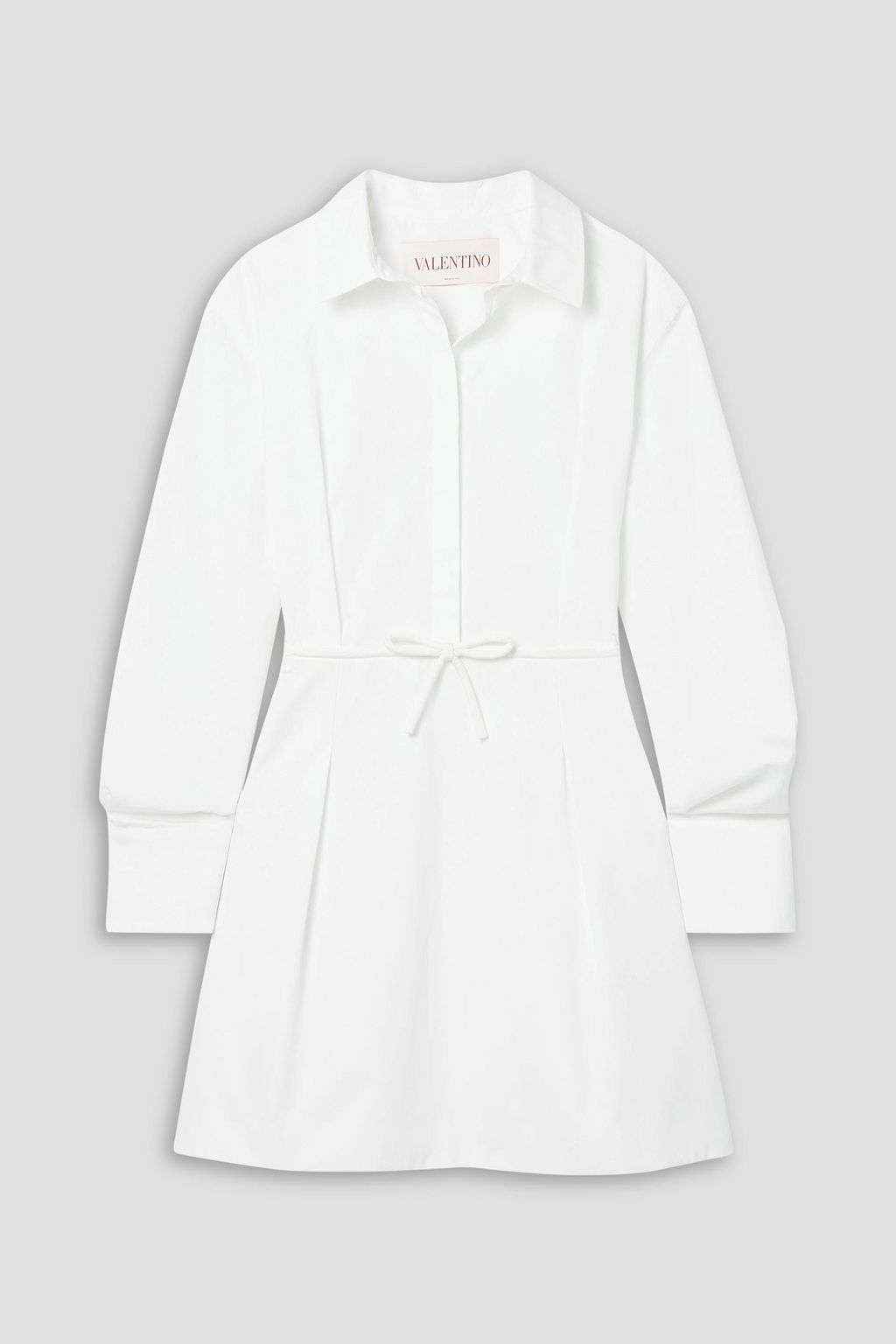 VALENTINO GARAVANI Bow-detailed pleated cotton-poplin mini shirt dress