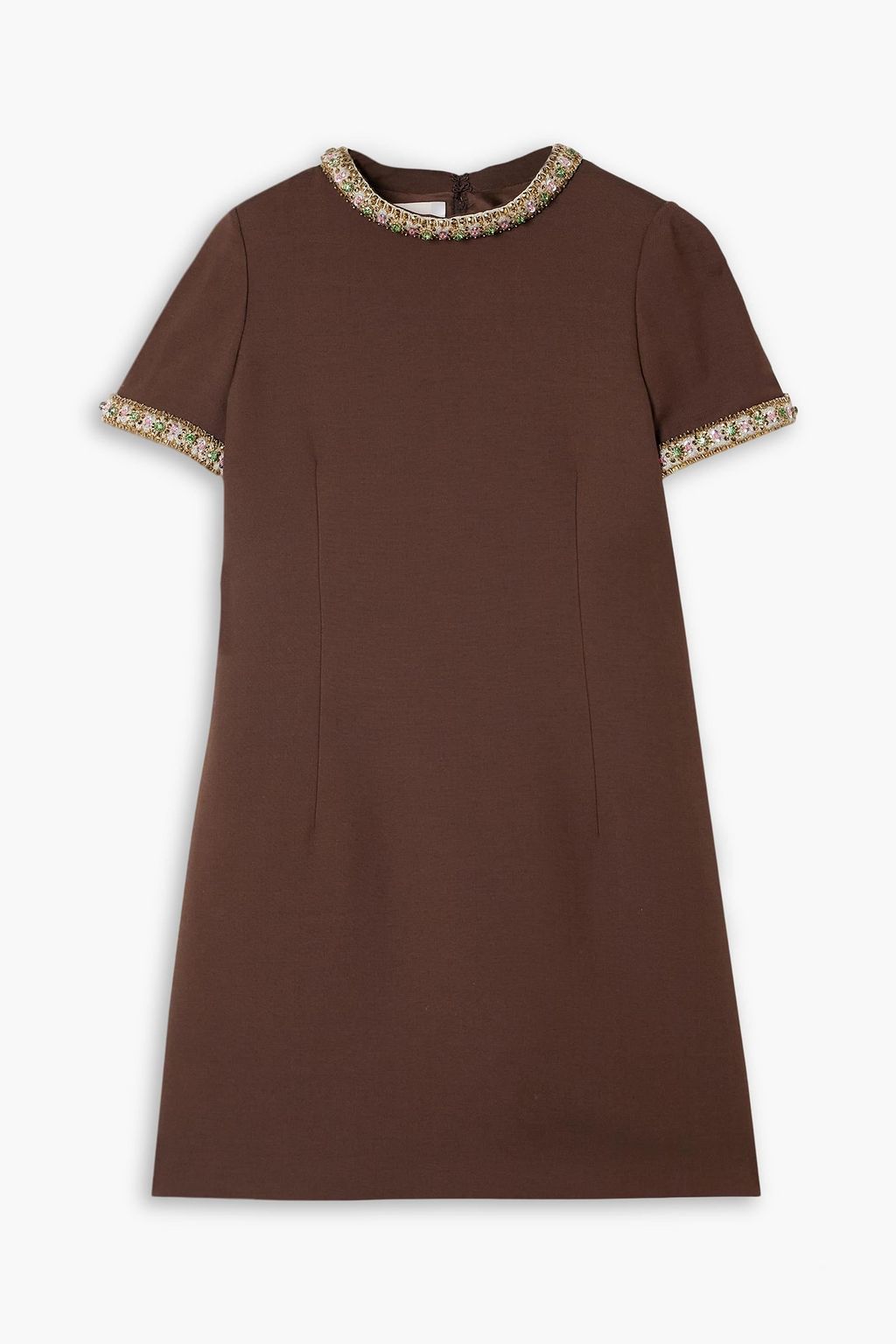 VALENTINO GARAVANI Embellished wool and silk-blend mini dress