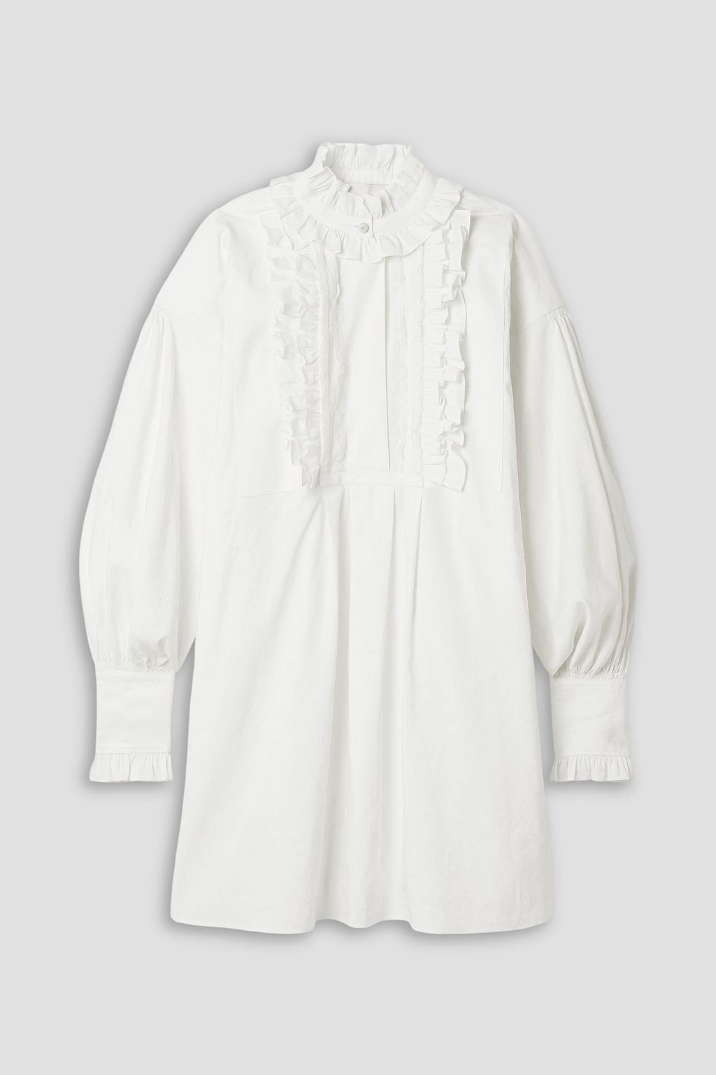 VALENTINO GARAVANI Lace-trimmed ruffled cotton, linen and silk-blend mini shirt dress