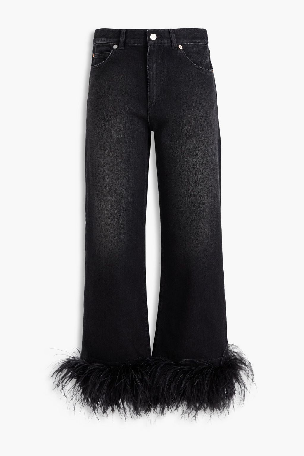 VALENTINO GARAVANI Feather-embellished high-rise straight-leg jeans