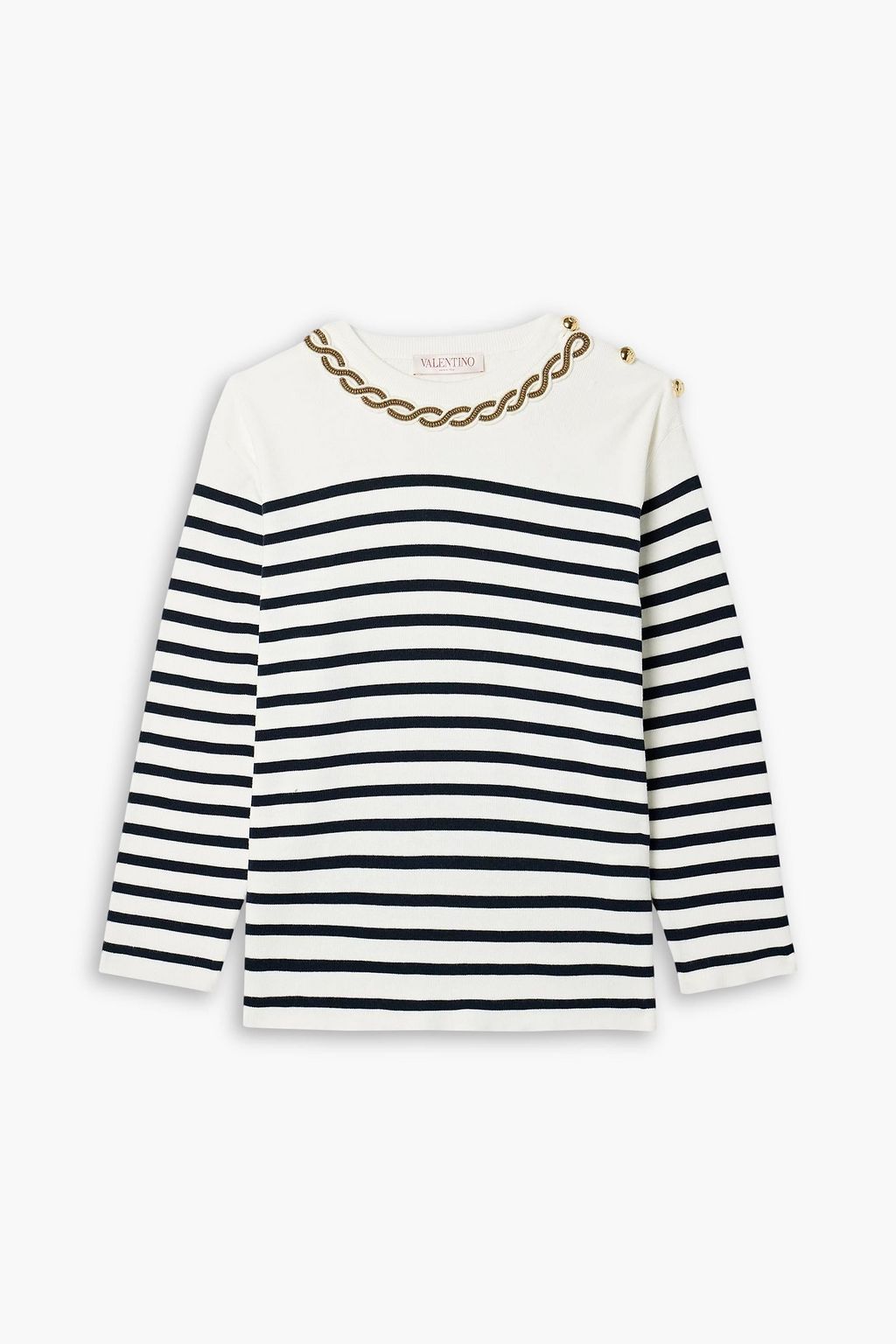 VALENTINO GARAVANI Embellished striped ribbed cotton sweater