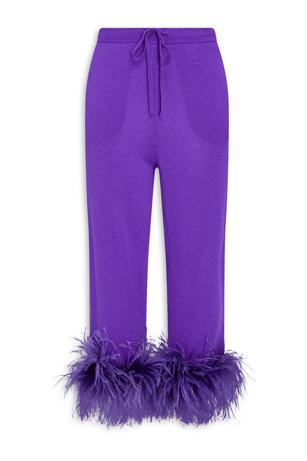 VALENTINO GARAVANI Cropped feather-embellished cashmere straight-leg pants