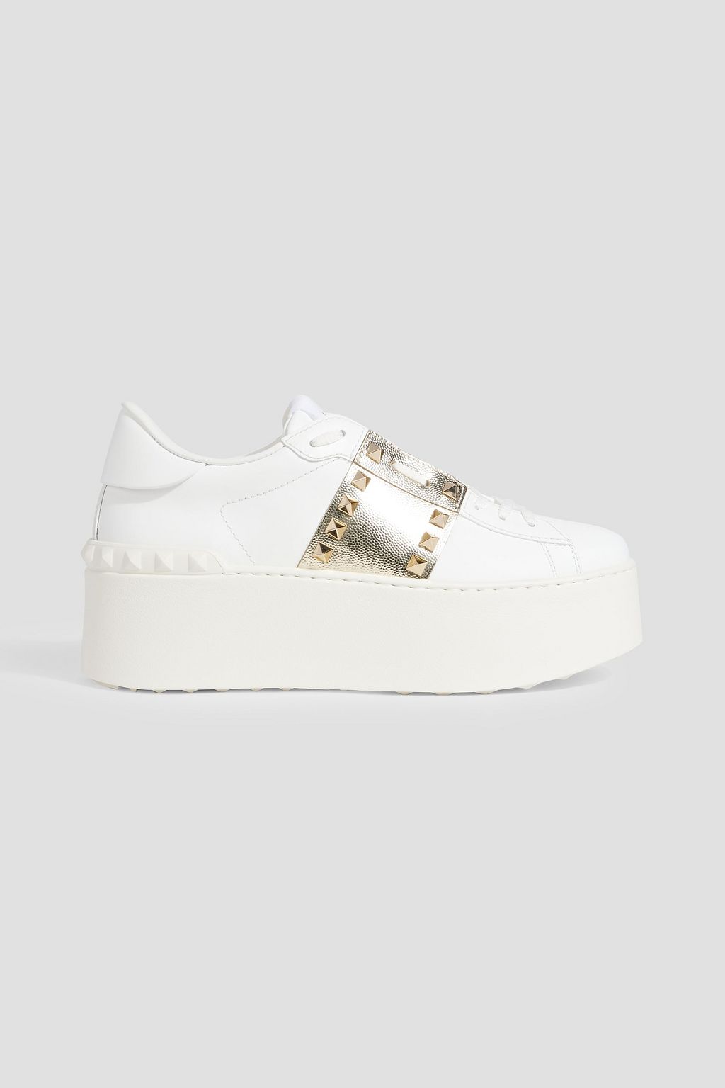 VALENTINO GARAVANI Rockstud Untitled metallic smooth and pebbled-leather platform sneakers