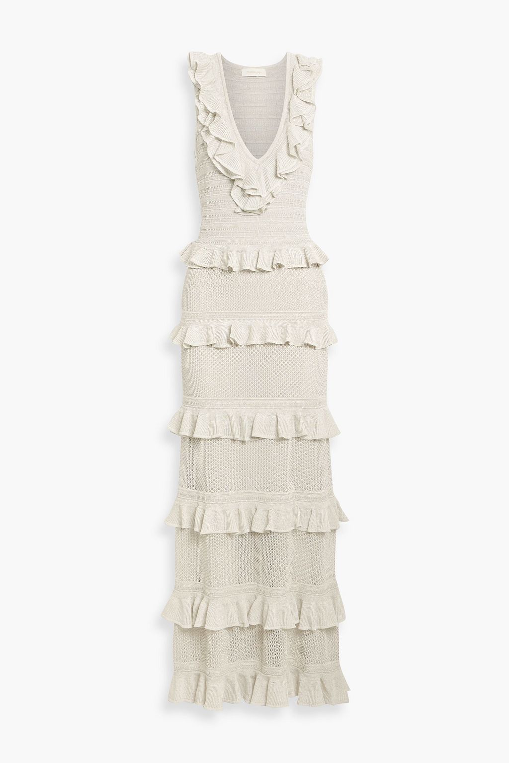 ZIMMERMANN Ruffled metallic pointelle-knit maxi dress