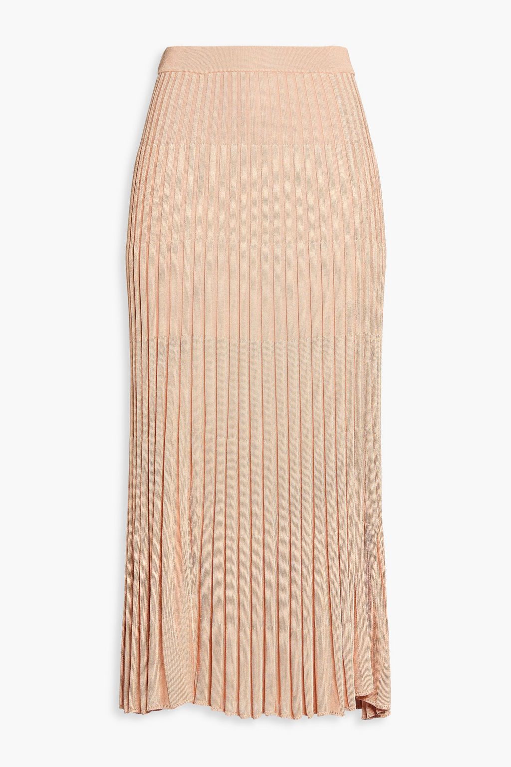 ZIMMERMANN Pleated ribbed-knit midi skirt