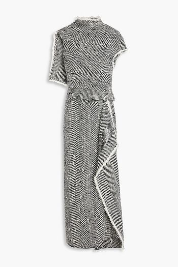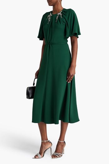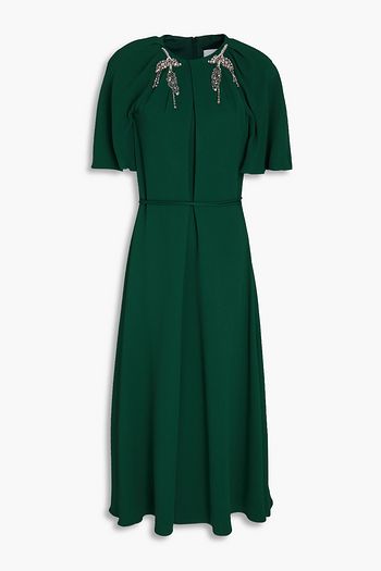 Floral-appliquéd Prince of Wales checked wool-tweed midi dress