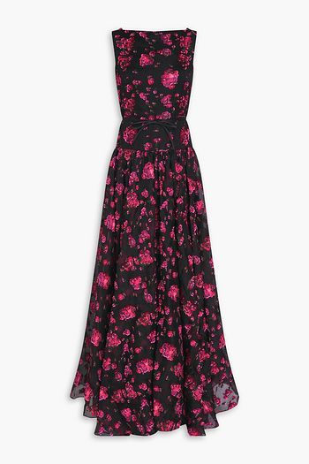 Off-the-shoulder floral-print cotton-faille maxi dress