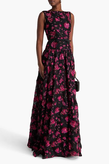 Yesenia bow-detailed tiered embroidered cotton-blend gauze midi dress