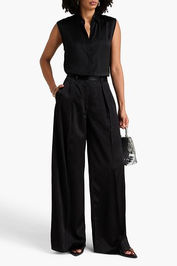Plissé cotton-blend crepon midi skirt