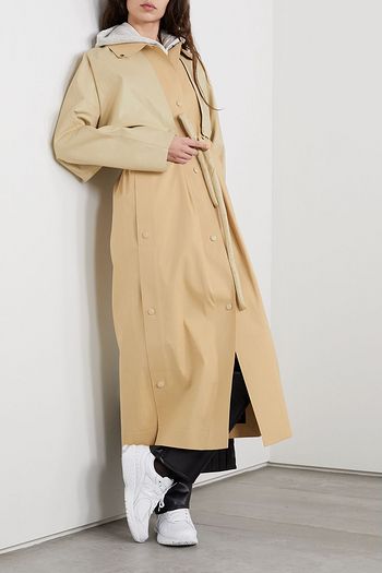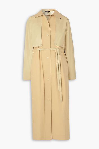 Oil convertible belted coated cotton-blend trench coat