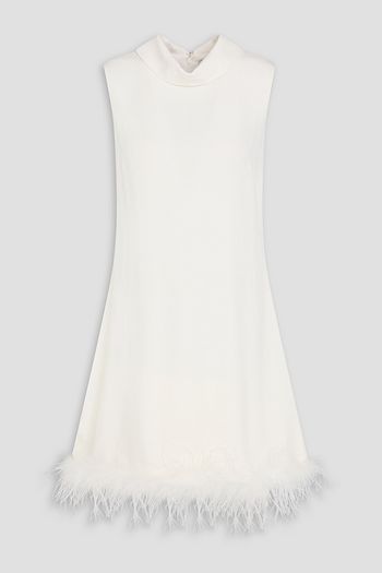 Lena feather-trimmed velvet mini dress