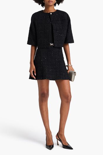 Ruffled sequin-embellished pointelle-knit cashmere-blend sweater