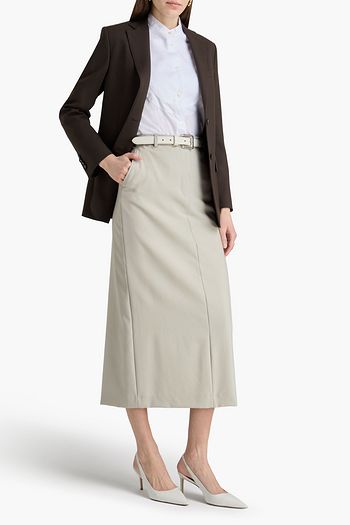 Kenia belted pleated herringbone wool midi skirt