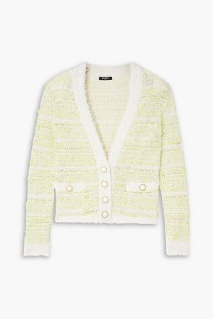 Cardigan, Sonia Rykiel. Top, Jil Sander. Pants, Miu Miu. Shoes, Giuseppe Zanotti. Bag, N°21. Earrings, Elizabeth Cole.