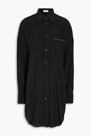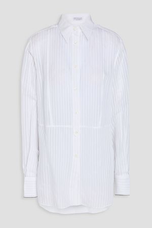 There is something quite satisfying about taking what was a traditional professional menswear suiting staple — the crisp shirt worn under a power suit tailored say, on Savile Row — and subverting it for more than just power moves on Wall Street. I’ve gone to many a cocktail party not in the mood to wear a dress, and I find adding a bold pair of earrings with an oversized shirt buttoned up all the way, collar up, and tucked into a voluminous skirt is as much a statement as a gown. Sharon Stone went even bolder with her crisp white shirt fully unbuttoned, tucked into a satin, lilac skirt for the Oscars in 1998! And I love how Jenna Lyons wears an oversized Oxford shirt these days fully unbuttoned tucked into her jeans, with flashes of skin and jewelry, less preppy and more sensual despite its thick, crisp cotton fabric.