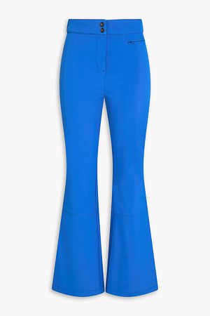 The two most important considerations with ski pants: fit and fabric. They should retain their shape, allow you to move freely and always remain watertight. Consider an all-in-one look – Perfect Moment has great options – to cover all bases.