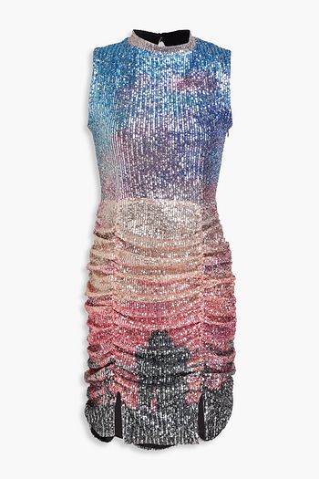 Ruched sequined tulle mini dress