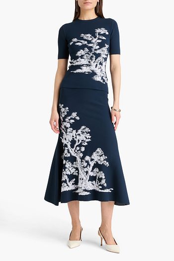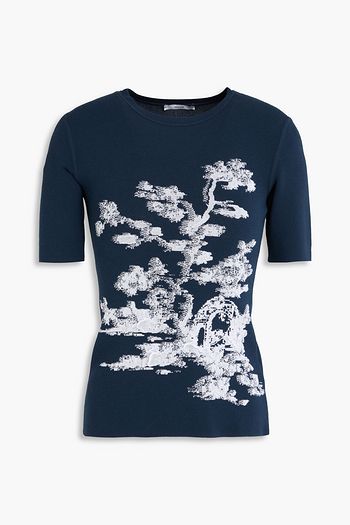 Mélange jacquard-knit cotton top