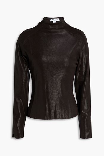 Ribbed wool, silk and cashmere-blend turtleneck sweater