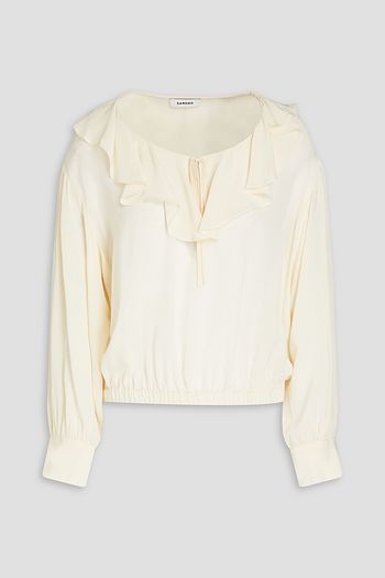 Ruffled paisley-print crepon blouse