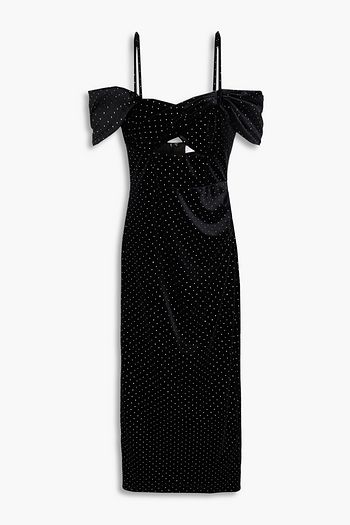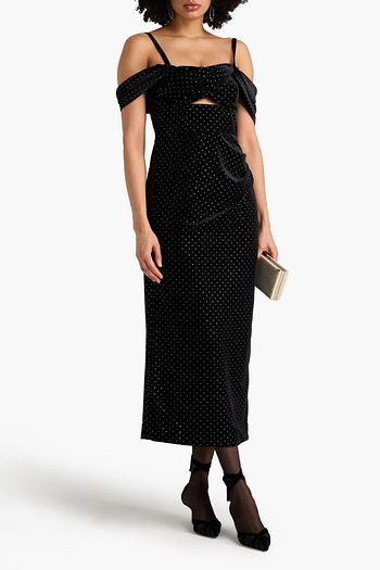 Adora cold-shoulder crystal-embellished cutout velvet midi dress