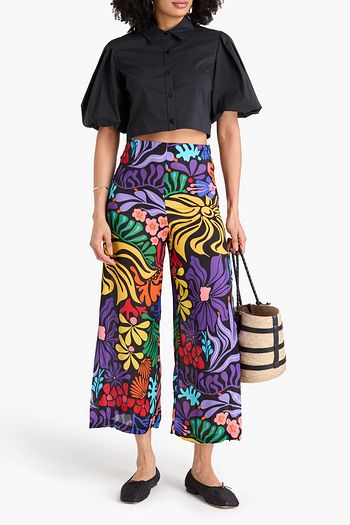 Halia floral-print crepe de chine wide-leg pants