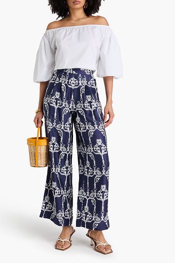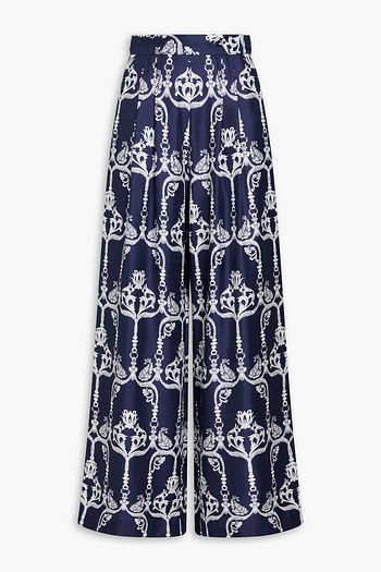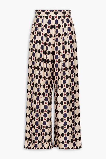 Melia pleated printed silk-twill wide-leg pants
